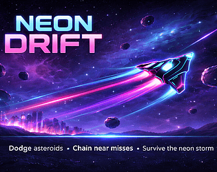 Pilot a neon starfighter. Dodge asteroids, chain near misses, and survive the endless storm.