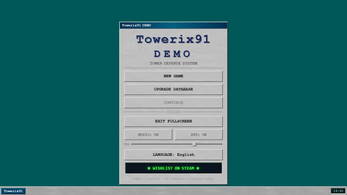 Towerix91 is a tower defense game in the style of PC games from the late 80s and early 90s. A warm color palette, soft CRT monitor effect, and an interface reminiscent of old operating systems create the atmosphere of a classic strategy game running on a vintage computer.