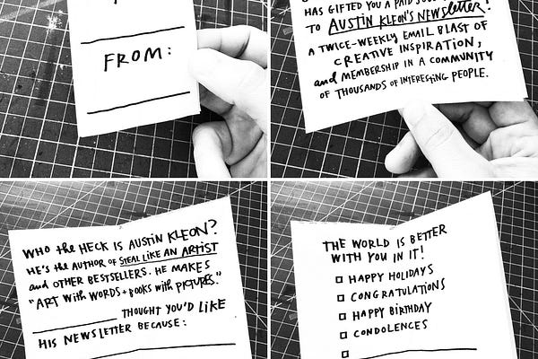 Weekly art, writing, and creative inspiration from the author of Steal Like an Artist and other bestsellers.