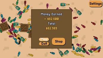 Click to break bottles and earn cash from each shattered bottle before the time limit runs out! Purchase upgrades in the shop and expand your skill tree to unlock new bottles, smash faster, and increase your profit. Create massive chains of chaotic bottle destruction in order to save up $1,000,000 and purchase yourself out of crippling debt!