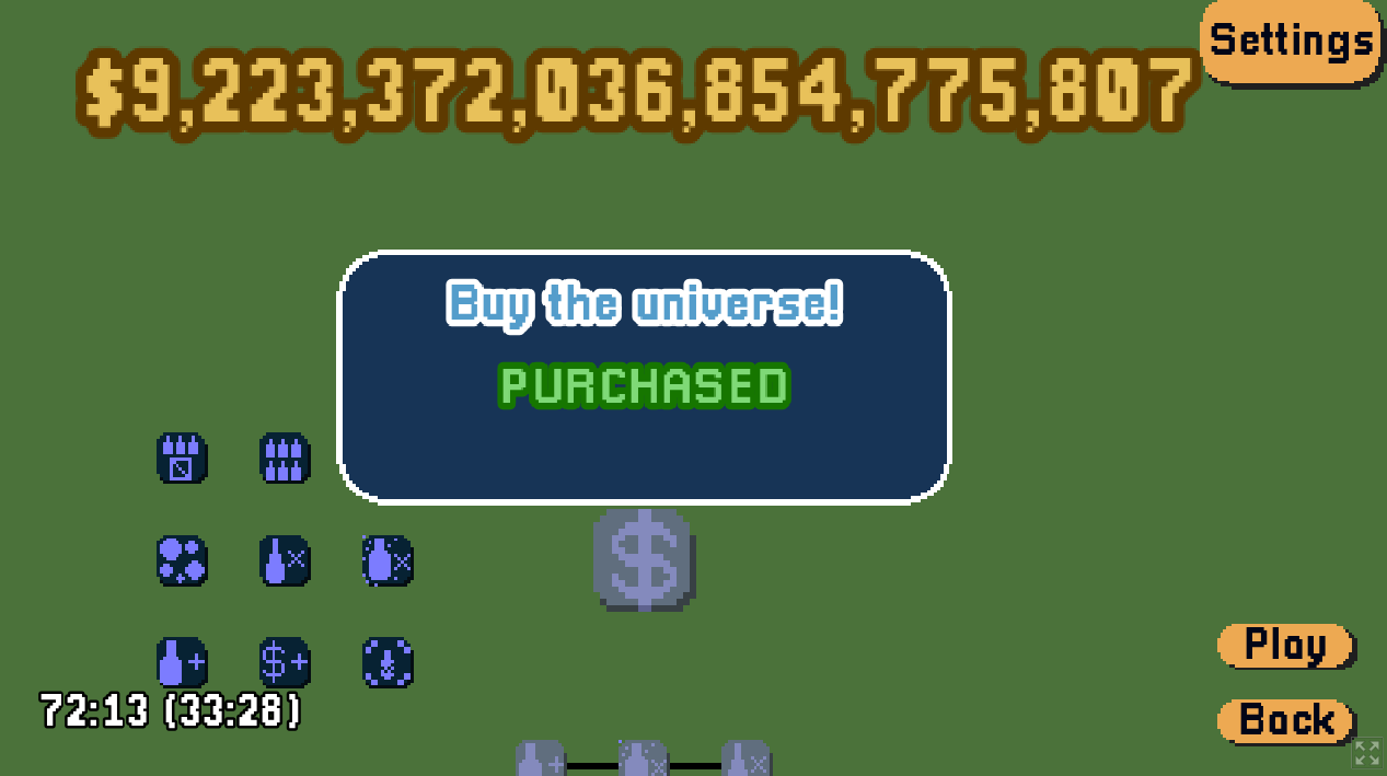 Really fun game! I wanted to reach Integer Overflow but you limited it XD