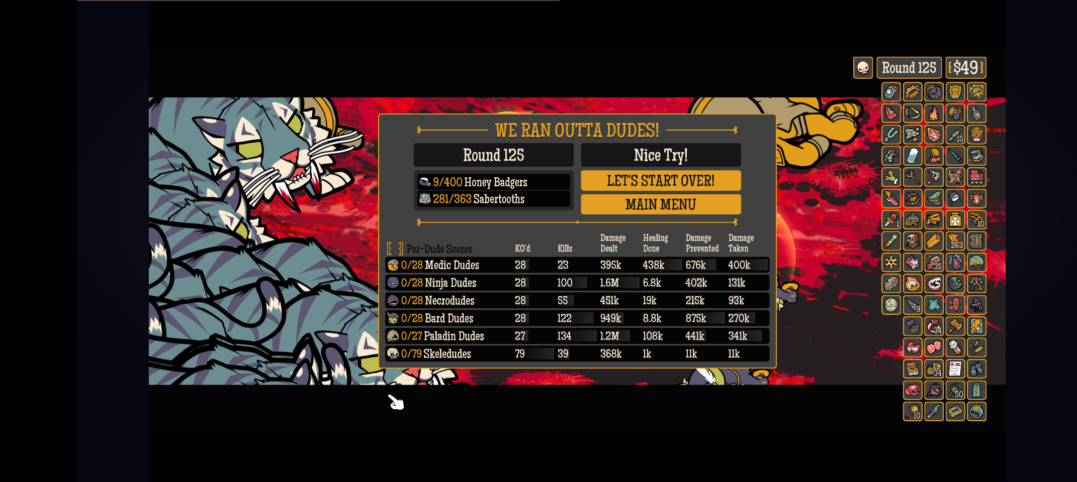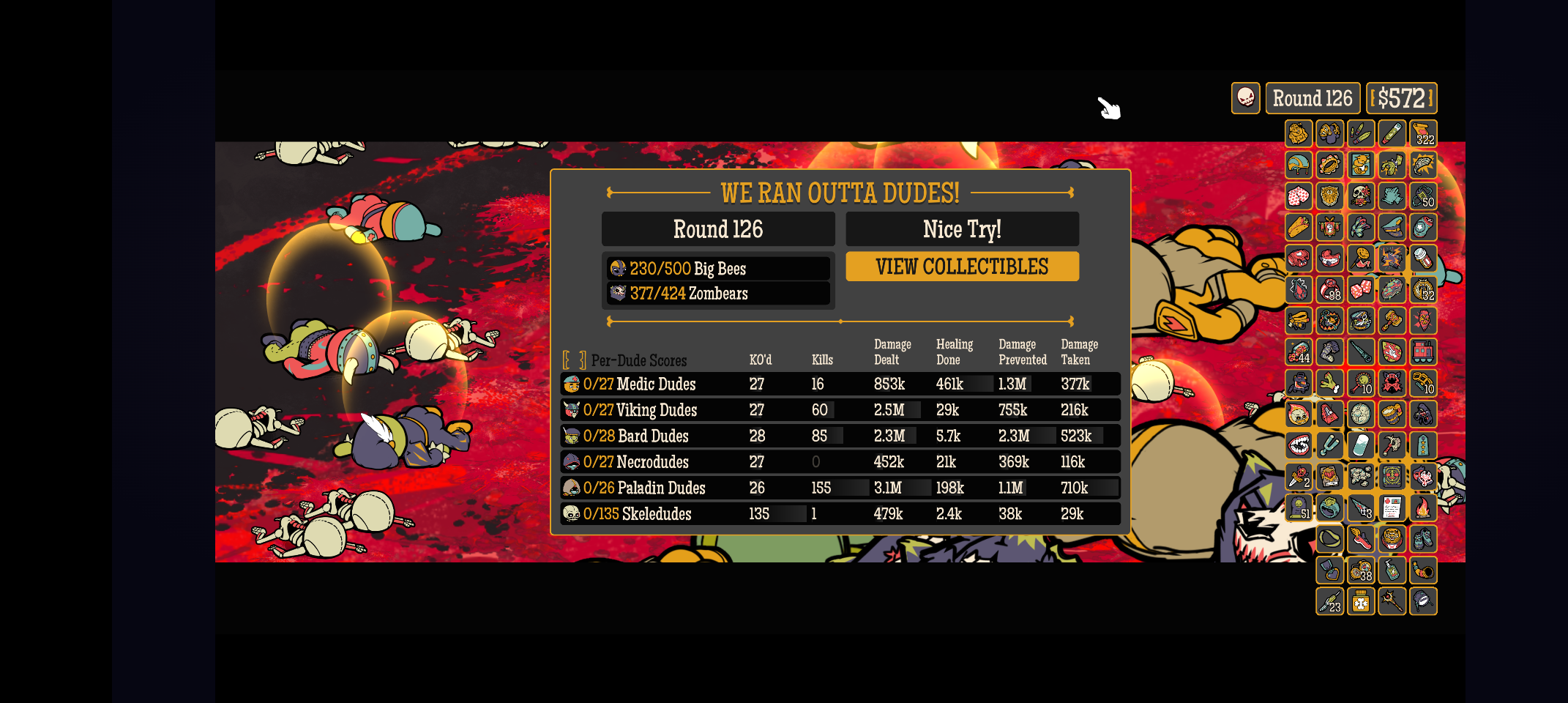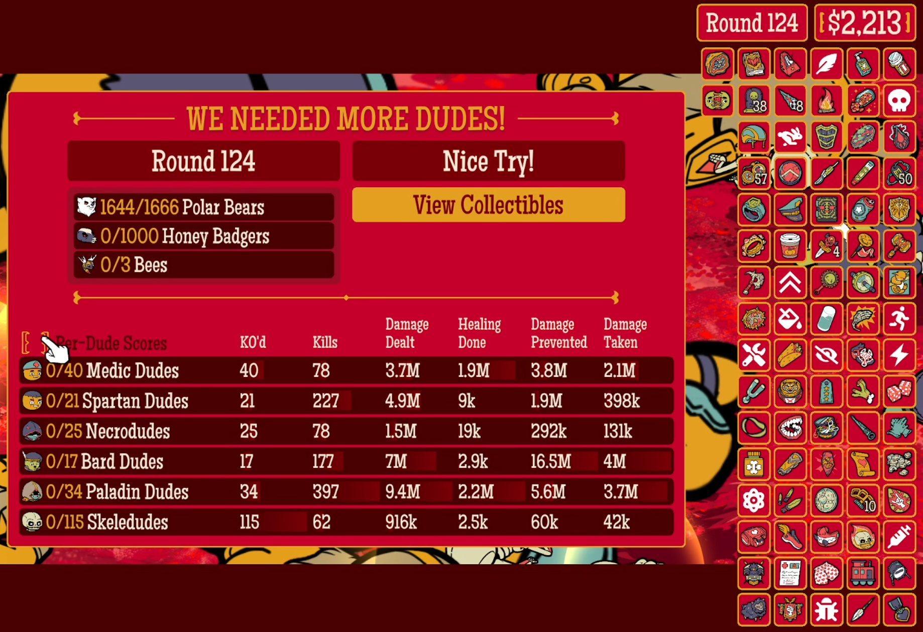 - Each run brings a fresh batch of Dudes for you to choose from.