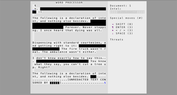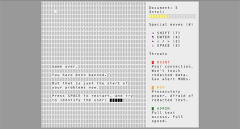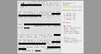 To succeed, you'll need to gather enough secret information and unmask implicated superusers who are striving to make permanent redactions.