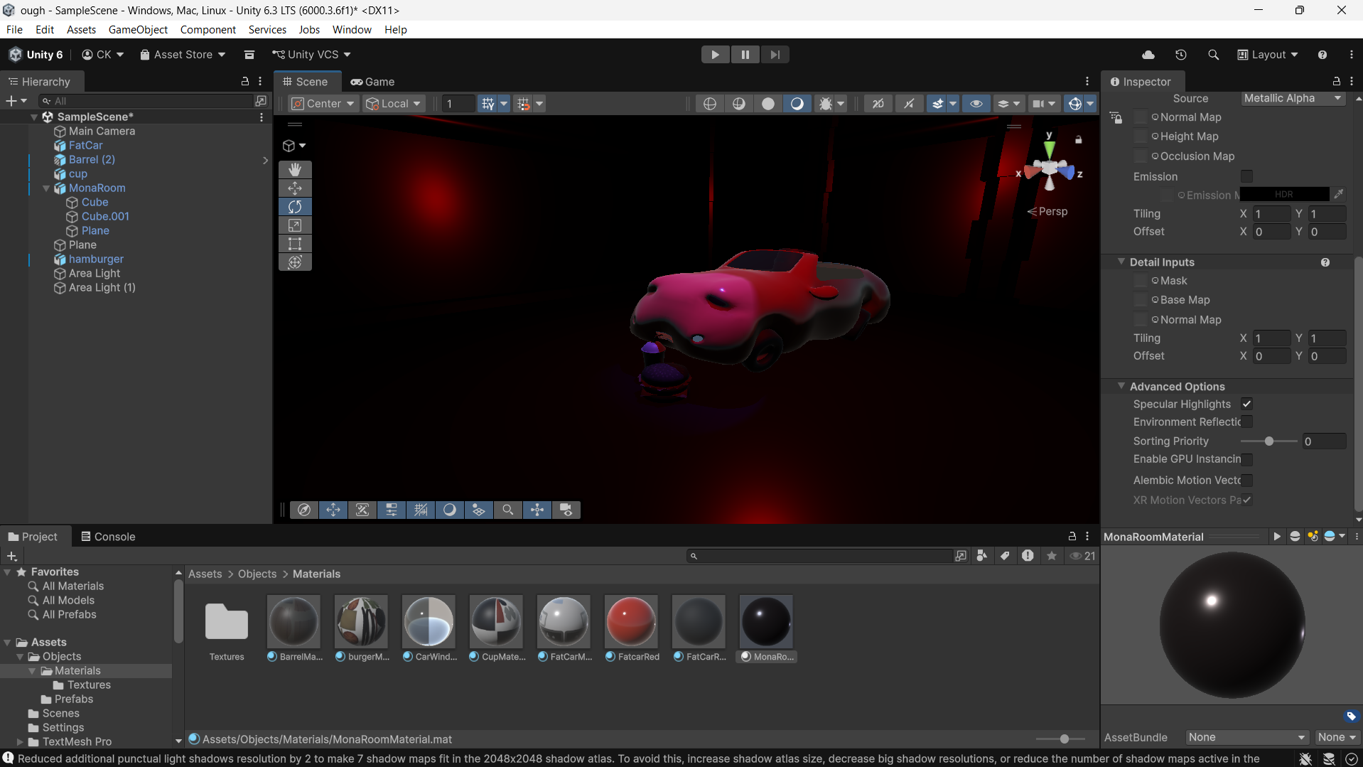 (Figure 1- My Fat Car model in the MONA-like scene I set up for it.)