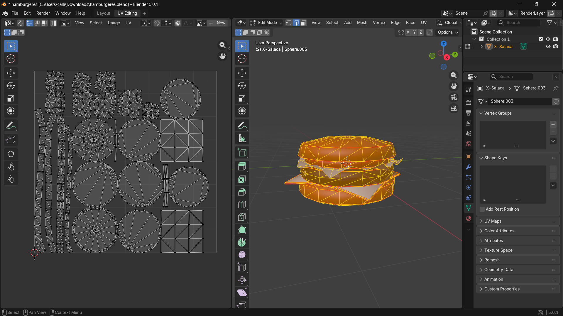 (Figure 9 - my freshly ;) UV-mapped burger in Blender.)