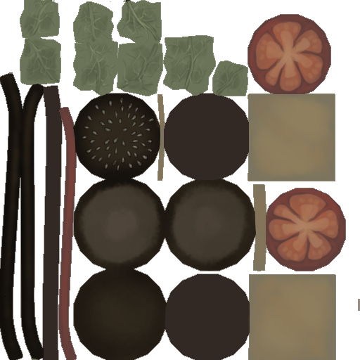 Opening up the burger model, I was surprised to see that each element of the burgers were textured using seperate materials (You can see this in the right sidebar in figure 8). Given this, my first step was adding seams to one of the burger models for UV unwrapping (figure 9), then taking a texture image I made by blocking out UV map sections into Clip Studio and painting a somewhat less appetising, more artsy looking burger texture (Figure 10). While I was already at it, I made a new texture for the cup model to match (Figure 11).