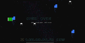 In a minimalist terminal-style battlefield, you navigate waves of enemies, dodge incoming fire, and push your reflexes to the limit. There are no flashy graphics to hide behind, only pure arcade design stripped to its core.