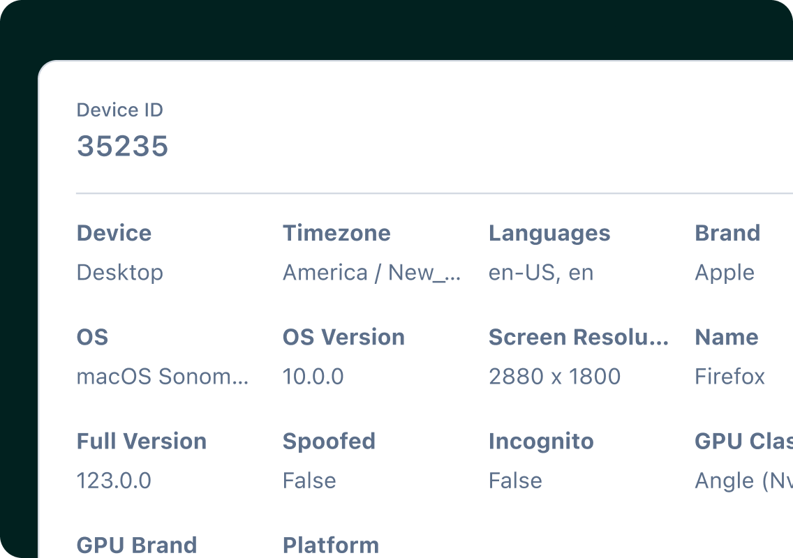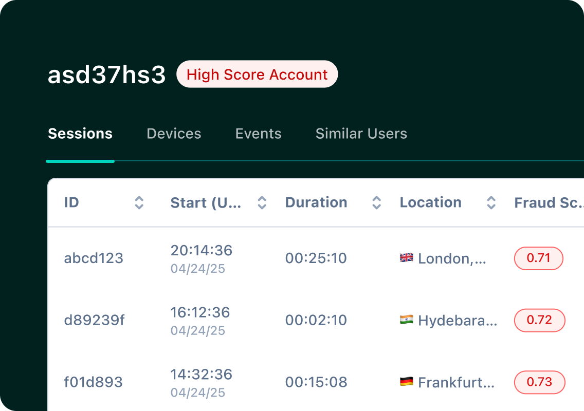 Monitor sessions, devices, and behavior. Spot fake accounts, account takeovers, multi-accounting, content abuse, and more without disrupting legitimate traffic.