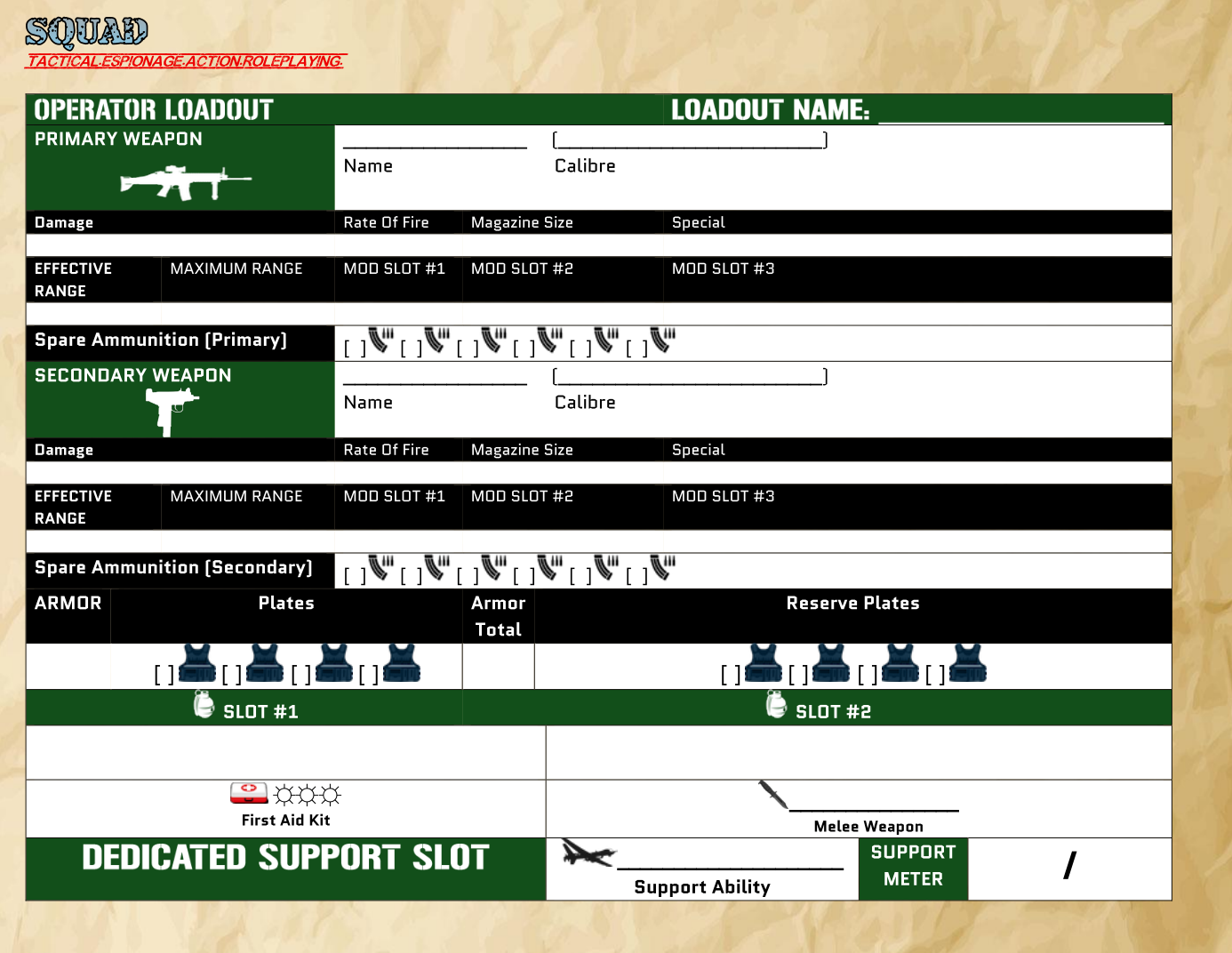 - SQUAD Operator Sheets: Character sheets for PC Operators.