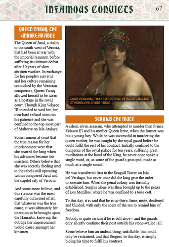 By the will of His Majesty Velasco III, for the past thirty years a penal colony now occupies the islands, under the governance of viceroy Inigo Salazar, and the constant watch of the royal sorcerer Argos and his silent guards.