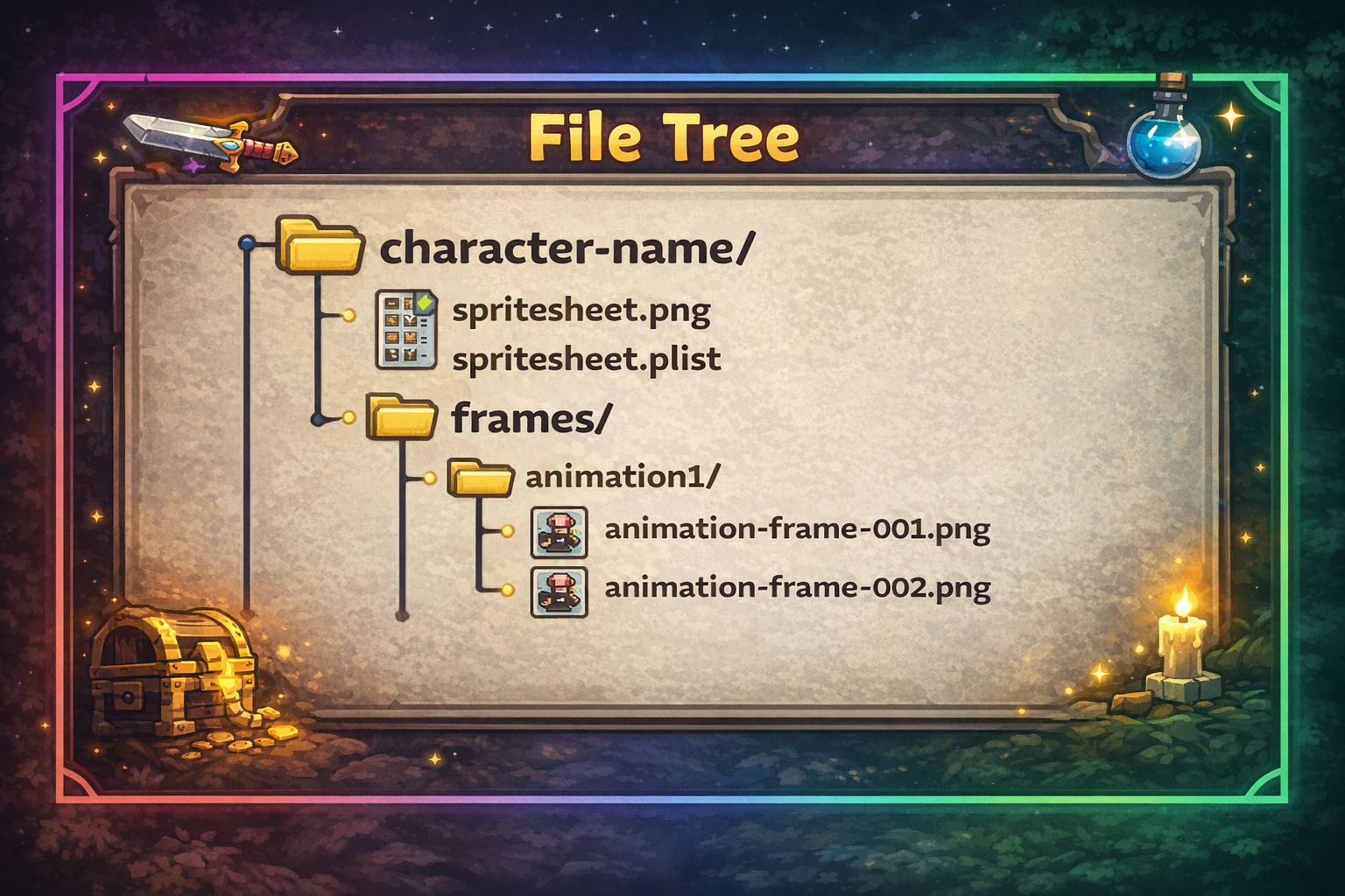 - Individual sequential frame .pngs for every animation