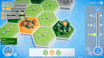 Welcome to your new mission! Hex Harmony is a mix of puzzle and management where you aim to restore the fragile balance between Nature and Humanity using futuristic technologies. Despite its minimalist city-builder appearance, each level is a true strategic challenge. Every choice matters: building a village boosts Human development but pushes wildlife away, while planting forests strengthens Nature at the cost of usable space.