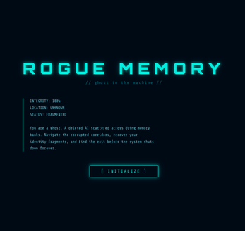 ROGUE MEMORY is a browser-based first-person dungeon crawler with retro raycasting visuals, turn-based tactical combat, and a narrative told entirely through recovered memory fragments. Every run generates a new map. Every layer goes deeper into the machine — and closer to the truth.