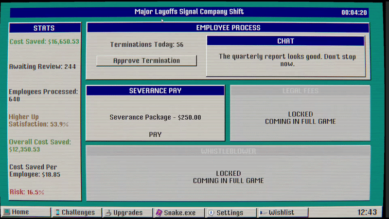 DOWNSIZING.EXE is a dark management game where every decision has consequences.