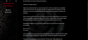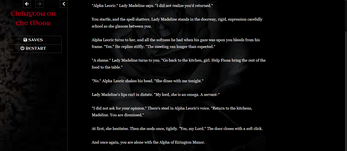 Are you planning to add any text size/color options? The dark red on black is pretty hard to read. I like the story so far though!