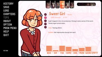 Oh wow! I... don't have a ton of experience with VNs. Most don't hold my attention very long. But WOW! I just finished chapter one, and there's already so much personality here! I'm really looking forward to the rest!