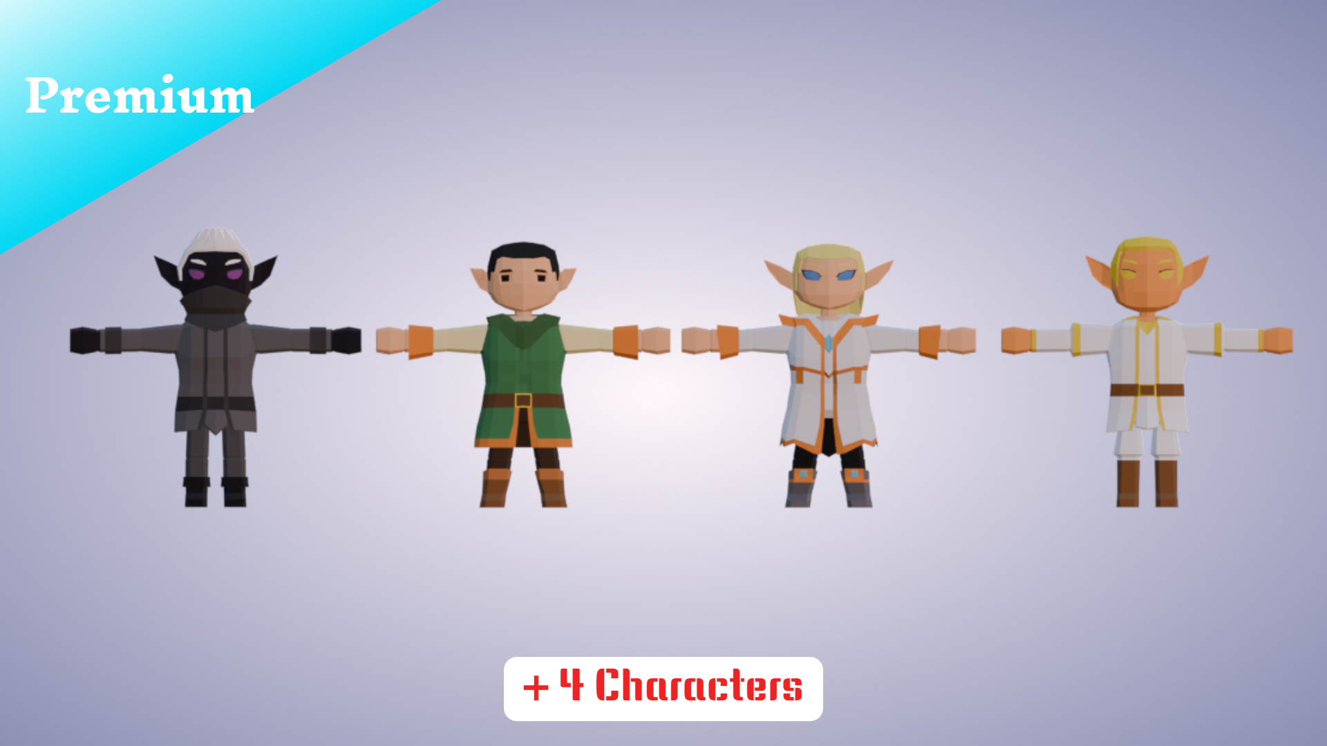 This Low Poly Elf Character Pack is designed for RPG, Adventure, Fantasy, and Indie games. All models are optimized for performance, use a single shared texture, and are fully rigged for easy animation in Unity, Unreal Engine, Godot, and other game engines.