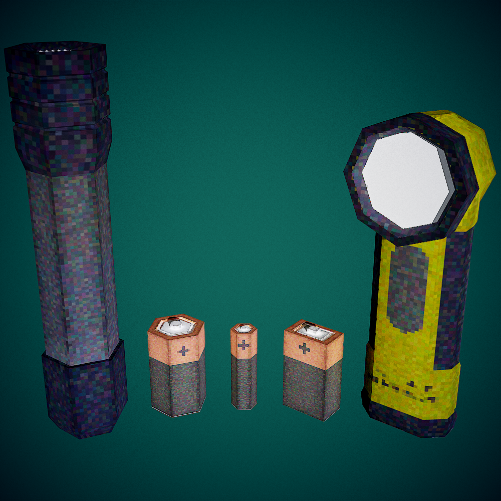 Get started on your game project with these Flashlights and Batteries. The assets have been made to mimic the modelling and texturing limitations that the PS1 had back in the 1990's. To do this, I have limited the colours and resolution along with limiting the topology.